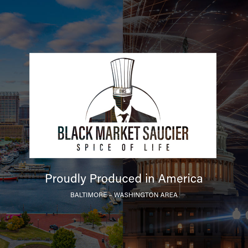 Black Market Saucier hot sauce is crafted with passion in the Baltimore–Washington area, proudly supporting American manufacturing and local communities.